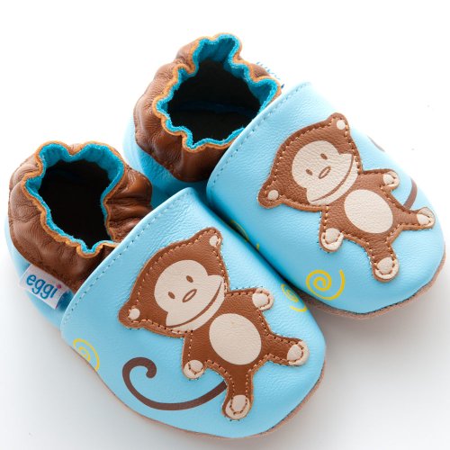 This shoe will make you go bananas! With soft pastel like colors, your child will never want to outgrow these shoes! Breathable leather upper showcases a monkey with printed accents. Elastic closure ensures an easy on and off design and best of all, stays on! Non-Skid suede outsole ensures balance and safety. For the baby who wants to evoke style and comfort, there is only EGGI. 100% Genuine Leather